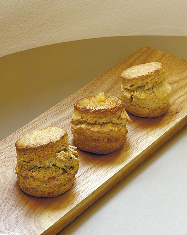 店主の藤巻 桂さんは以前、町内のライブラリーカフェで店長をしており、手製のスコーンが人気だった。退職後、桂さんは開業に向けて、スコーンのレシピをブラッシュアップ。特にこだわったのが食感だ。口の中でほどける、サクサクの食感を大切にしている。