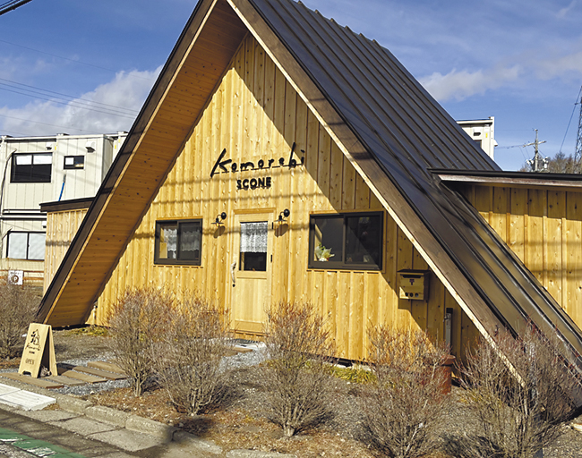 昨年10月にオープンしたスコーンの専門店。板張りの外壁と大きな三角屋根が目印だ。甘い香りが漂うナチュラルな雰囲気の店内には、「プレーン」(290円)、「はちみつレモン」(330円)、「アールグレイいよかん」(320円)など、6~8種類の自慢のスコーンが並ぶ。