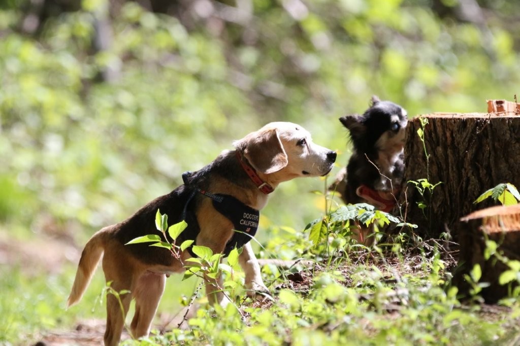 隣接する森のドッグランは、山の斜面を使い、走ったり、掘ったり、においをかいだり。